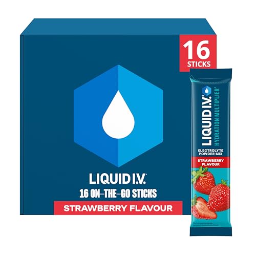 Liquid I.V. Hydration Multiplier Electrolyte Powder Mix, Strawberry Flavour, Electrolytes with 7 Vitamins & Minerals for Fast Hydration & Energy, Vegan and Gluten Free 16 Sachet Sticks