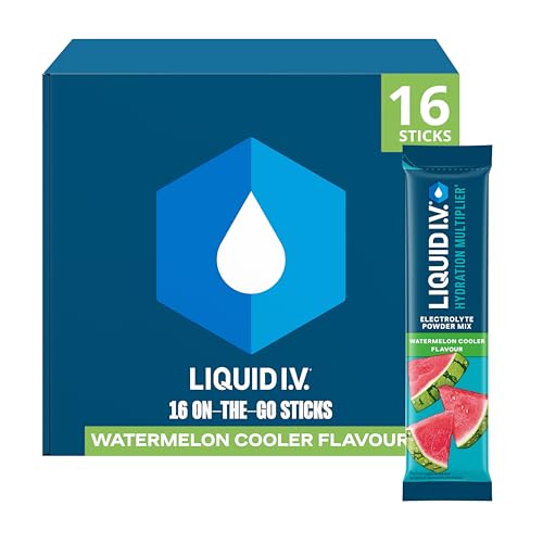 Liquid I.V. Hydration Multiplier Electrolyte Powder Mix, Watermelon Cooler Flavour, Electrolytes with 7 Vitamins & Minerals for Fast Hydration & Energy, Vegan and Gluten Free, 16 Sachet Sticks