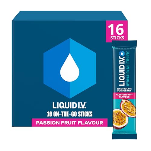 Liquid I.V. Hydration Multiplier Electrolyte Powder Mix, Passion Fruit Flavour, Electrolytes with 7 Vitamins & Minerals for Fast Hydration & Energy, Vegan and Gluten Free, 16 Sachet Sticks