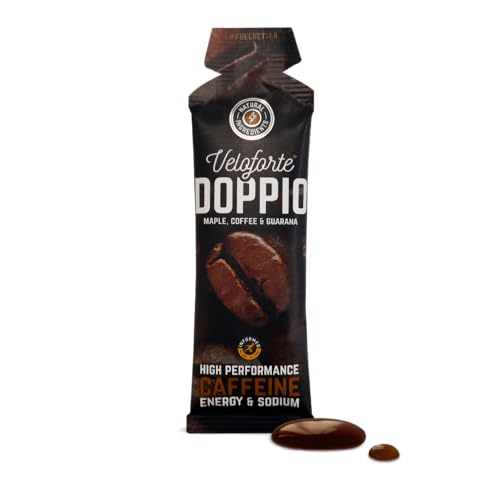 Veloforte Doppio Natural Energy Gels 24 Pack Maple, Coffee & Guarana, 22g Dual Carb Fast Release Energy with Electrolytes, 75mg Caffeine, Vegan & Gluten Free, For Running, Marathons, Cycling and Tri