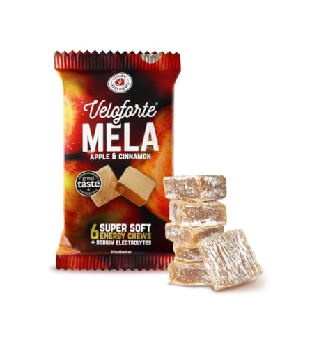 Veloforte Mela Natural Energy Chews, Apple & Cinnamon Flavour 9 Pack, 44g Fast Release Dual Source Carbs with Electrolytes, Vegan & Gluten Free for Cycling, Running, Marathons & Triathlons