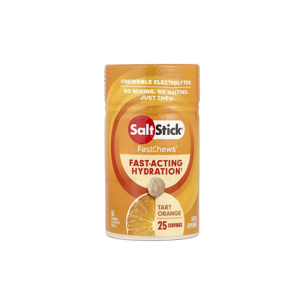 SaltStick FastChews Electrolytes - 60 Chewable Electrolyte Tablets - Salt Tablets for Running, Fast Hydration, Leg Cramps Relief, Sports Recovery Vegan, Gluten Free (Orange)