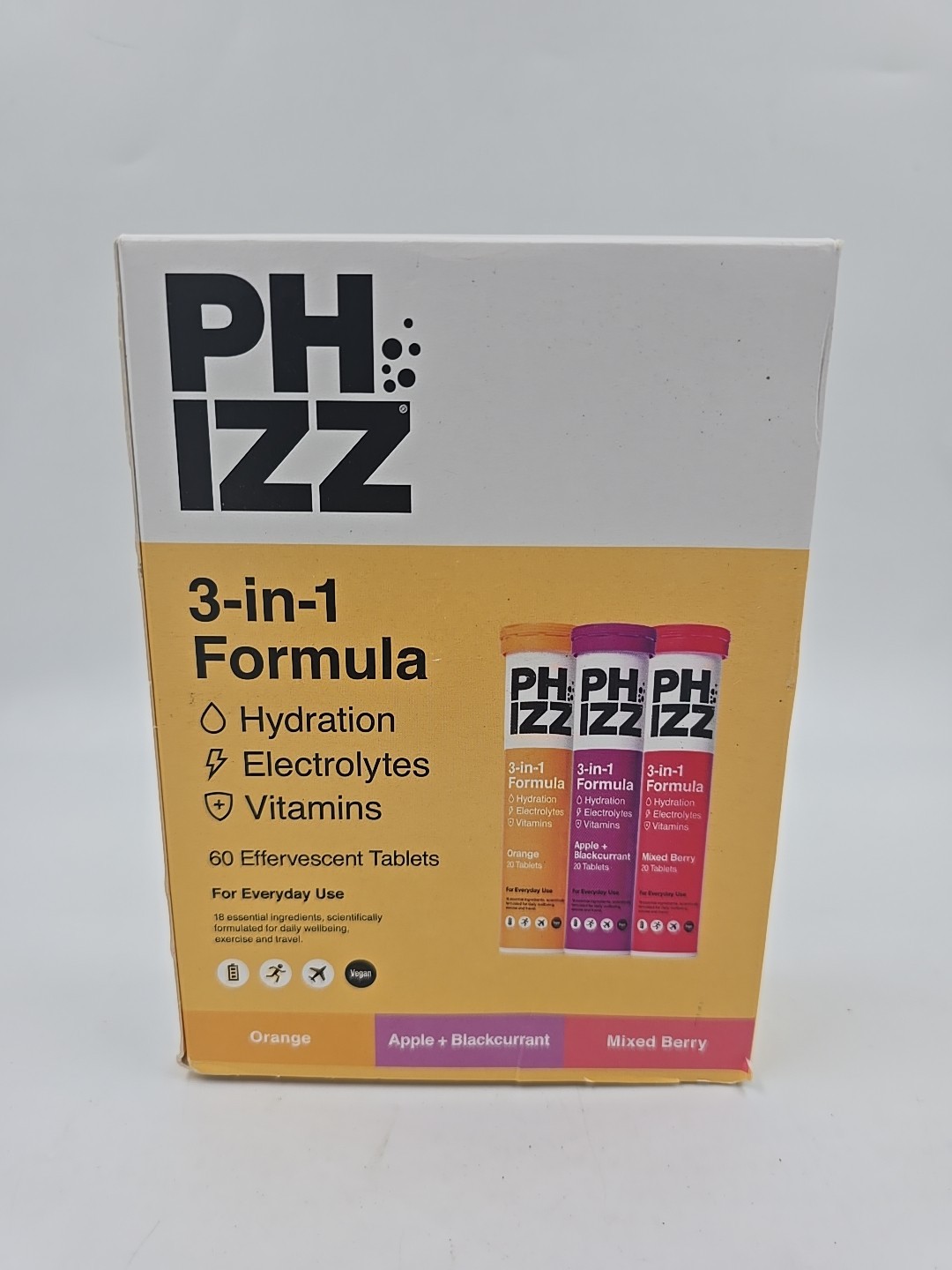 Phizz Orange 3 in 1 Hydration, Electrolytes and Vitamins Effervescent Bundle (60 Tablets)