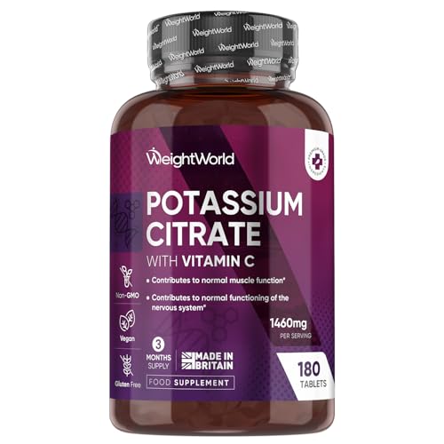 Potassium Supplements with Vitamin C 1460mg | 3 Months Supply | 180 Tablets | Electrolytes Tablets | Bioavailable Potassium Citrate Form | Non-GMO, Gluten-Free & Vegan-Friendly | Made in The UK