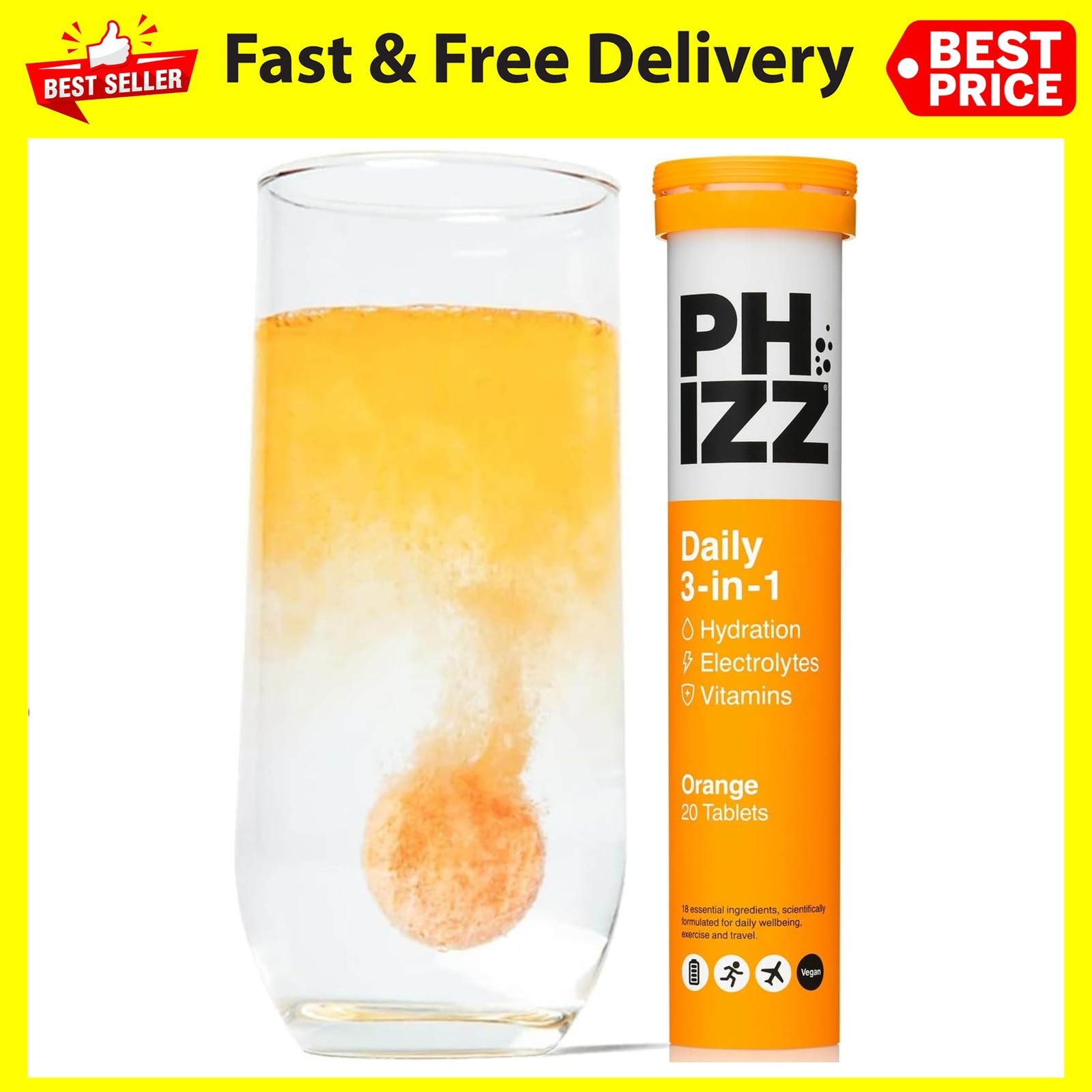 Phizz Electrolytes, Multivitamin & Hydration Tablets â 20 Effervescent Rehydration Tablets, 18 Vitamins Minerals, Vegan Gluten-Free
