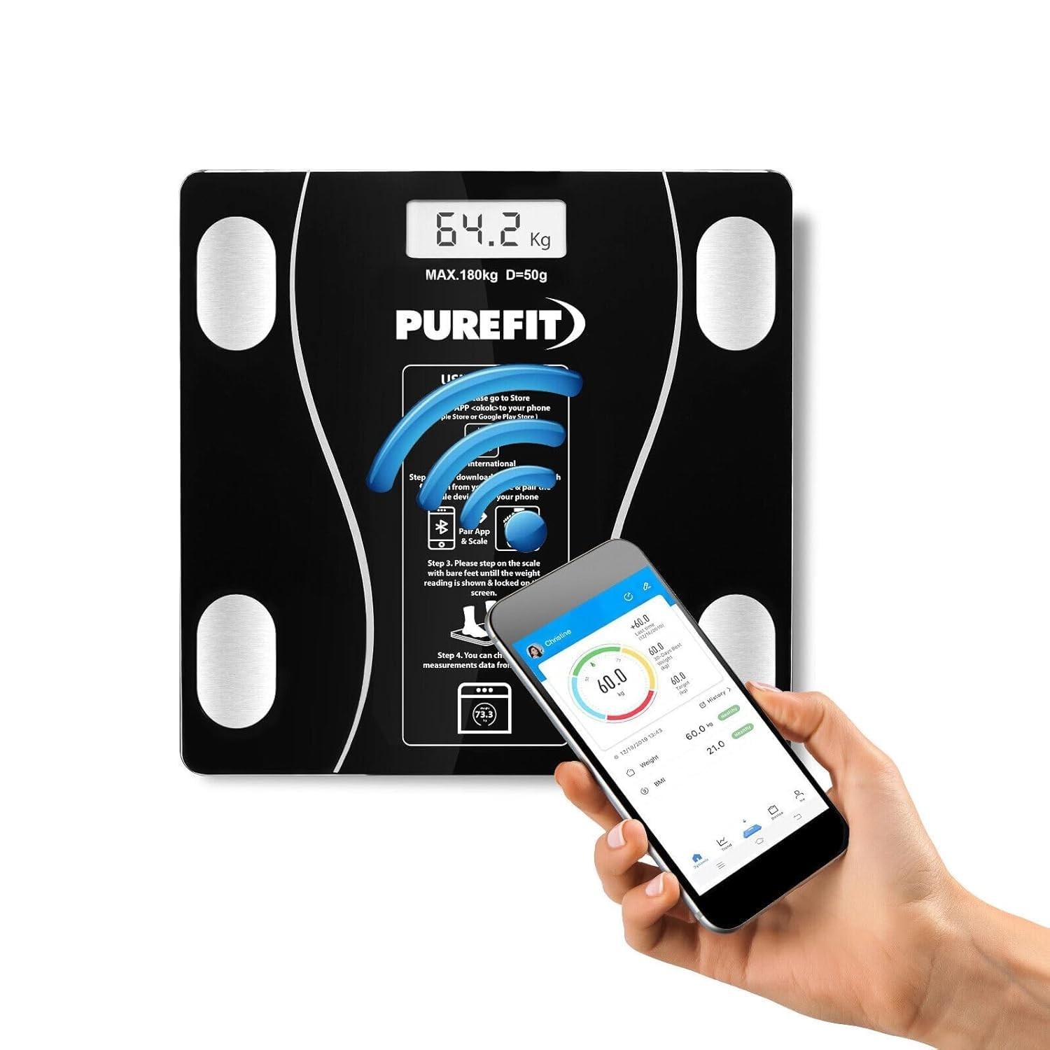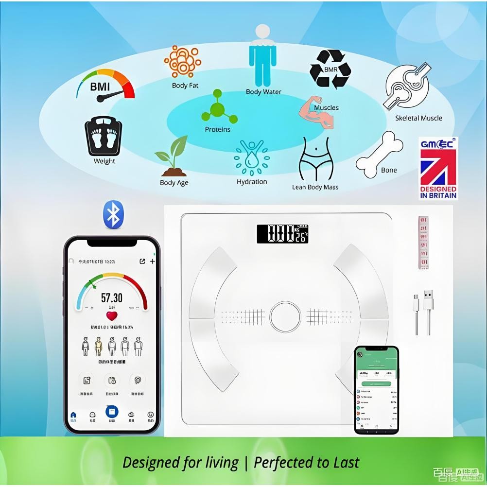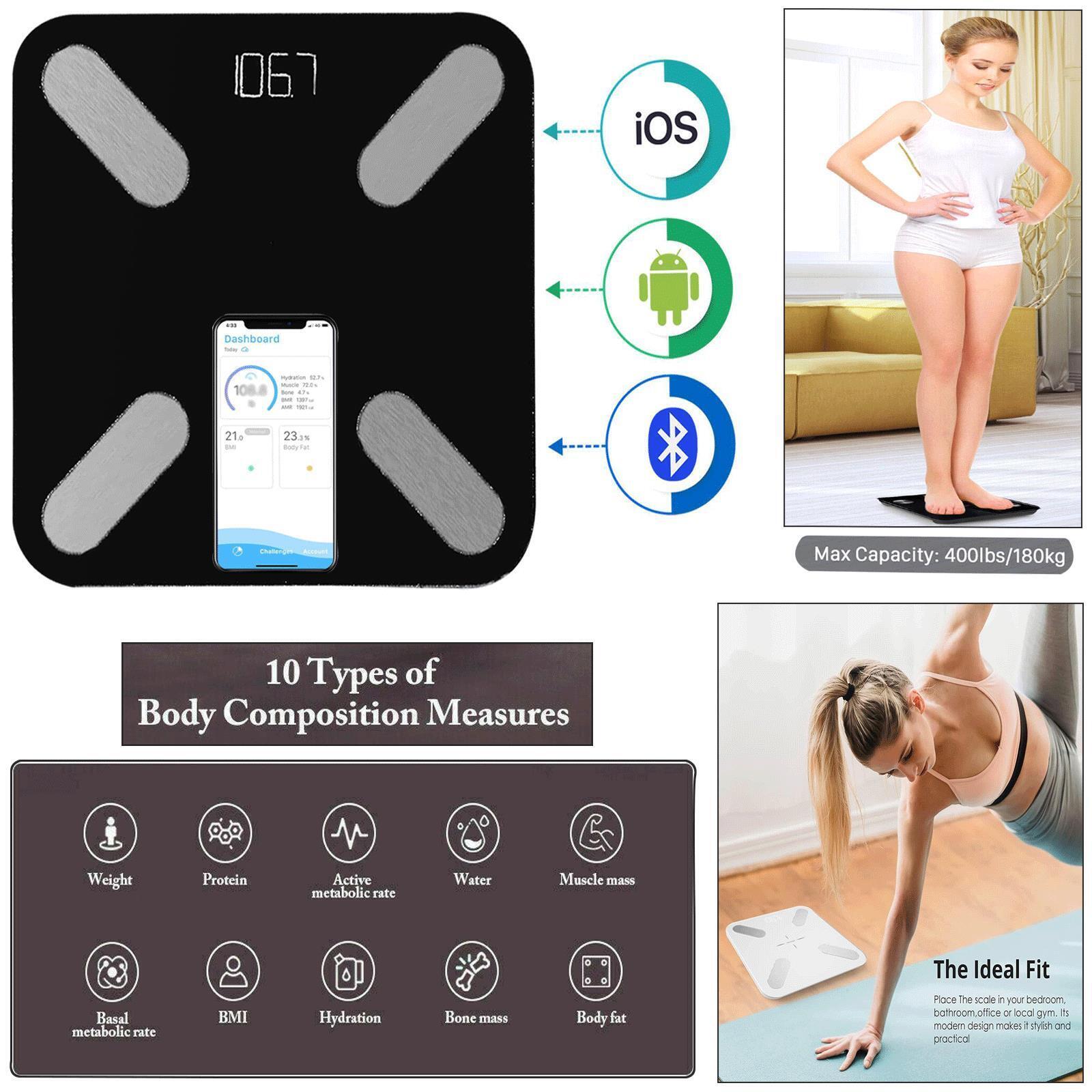 GE Smart Scale for Body Fat, Bathroom Weight Scales for BMI Muscle Mass Digital Bluetooth Electronic Body Composition Monitor for People with App Large Display, Accurate 180kg/400 Pounds Capacity