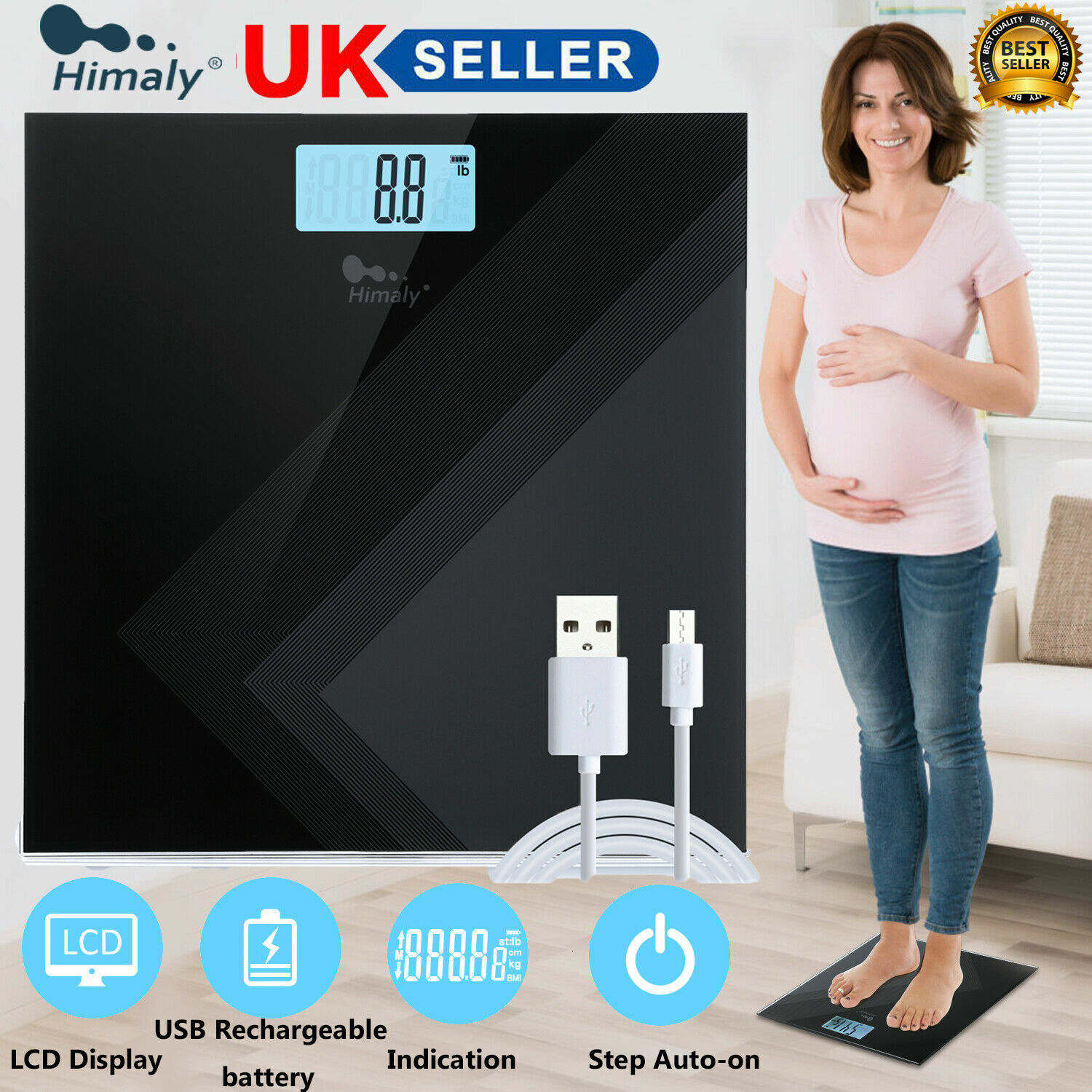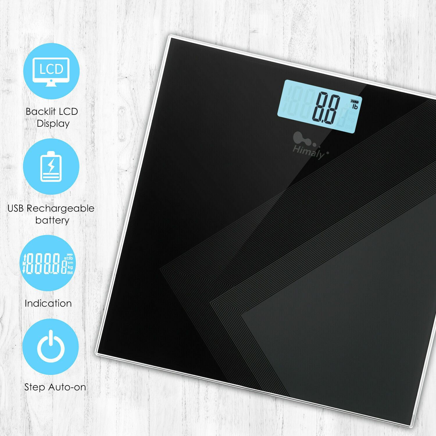 Himaly 180KG Bathroom Weighing Digital Scales LCD Electronic BMI Body Measures