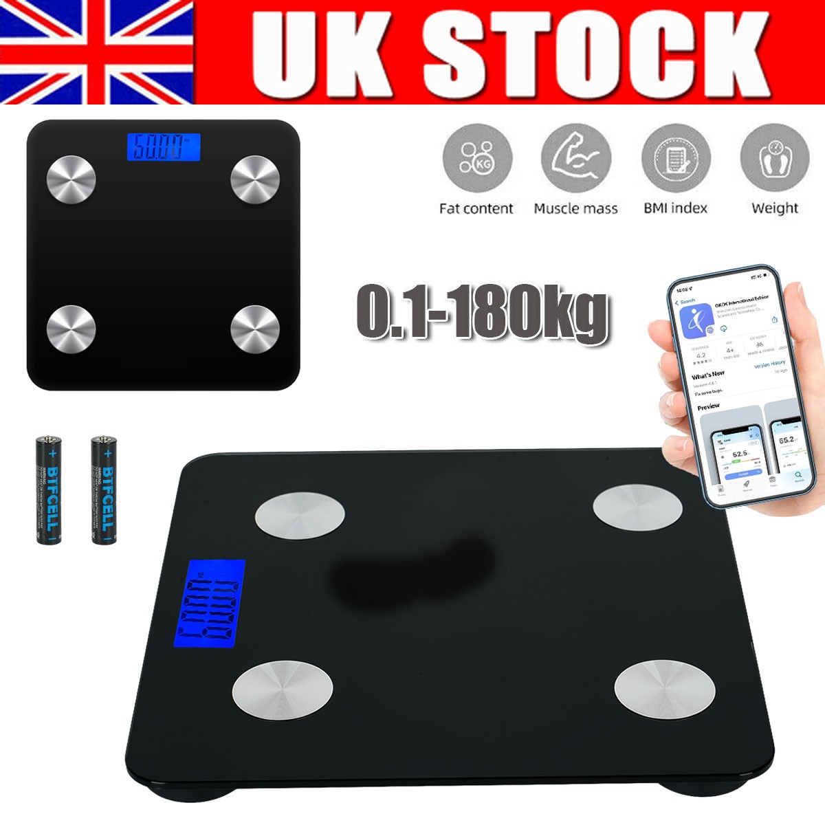Digital Bathroom Scales 180KG Body Weight Weighing Scale Smart LED Electronic UK