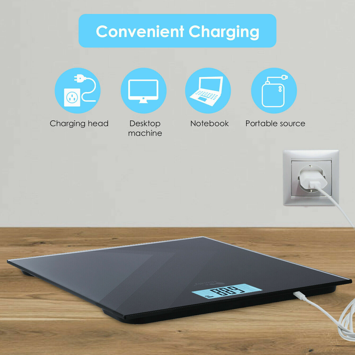 Glass Electronic Digital LCD Bathroom Scales Rechargeable Body Weighing KG LBS