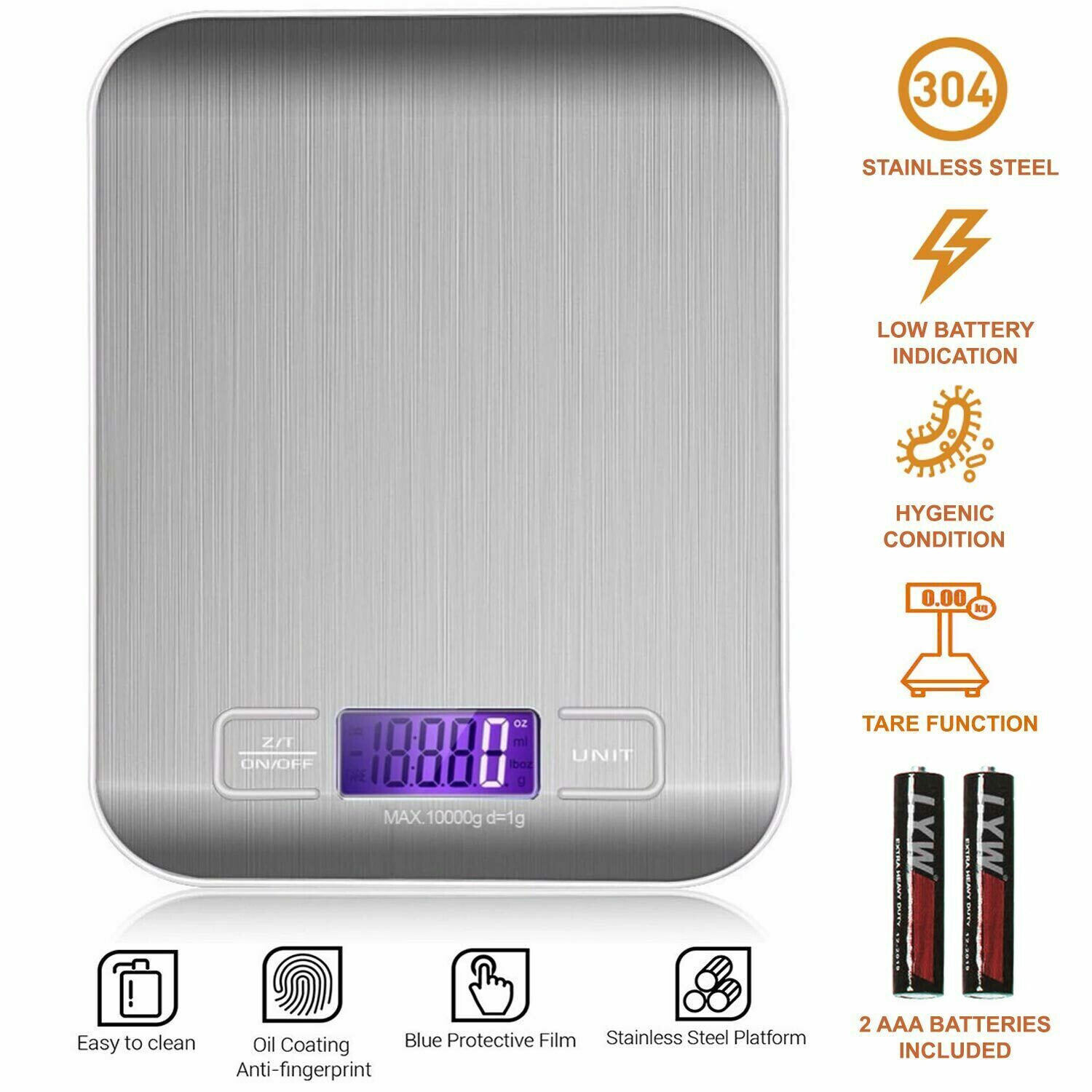 Digital Kitchen Food Scales,10kg Premium Stainless Electric Cooking Scales Electronic Weighing Scales,with Led Display,for Kitchen,ingredients,jewellery,drug,coffee,tea