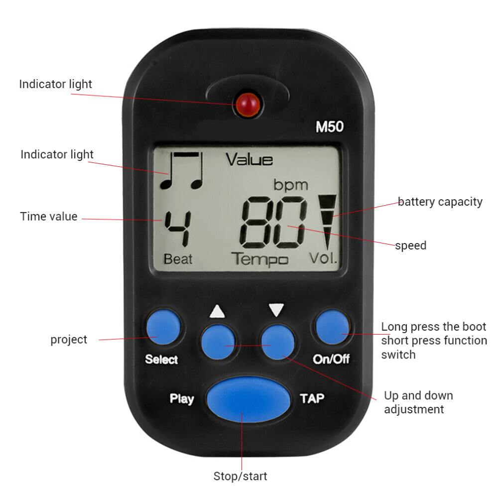 Electronic Metronome for Musical Instruments Clip-On Design Portable & Precise