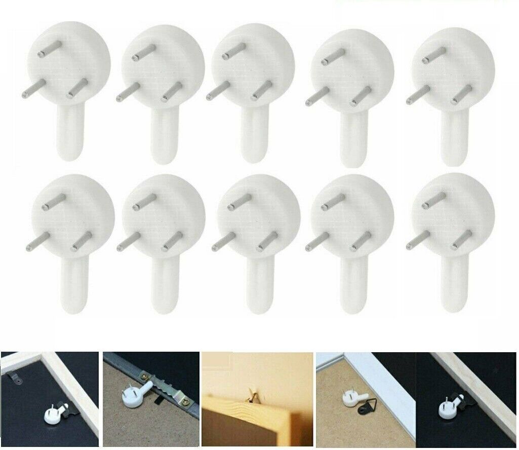 Plastic Hard Wall Picture Hooks Frame Photos Mirror Small Hanging Hook UK x 10
