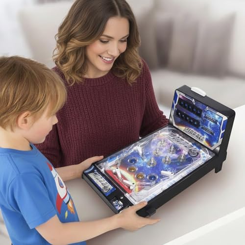 Portable Pinball Machine, Space-Themed Tabletop LED, Electronic Arcade Game with Flashy Lights, Sound, Digital Scoreboard, Retro-Style Fun Gift for Boys, Girls Ages 5 and Up