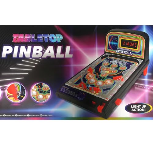 Retro Arcade Electronic, Pinball - Tabletop Game, Pinball Machine, Table Pinballs Game Machine, Desktop Ball Shooting Toy, Vibrating Bumpers LED Lights Sound Effects, Ages 4+