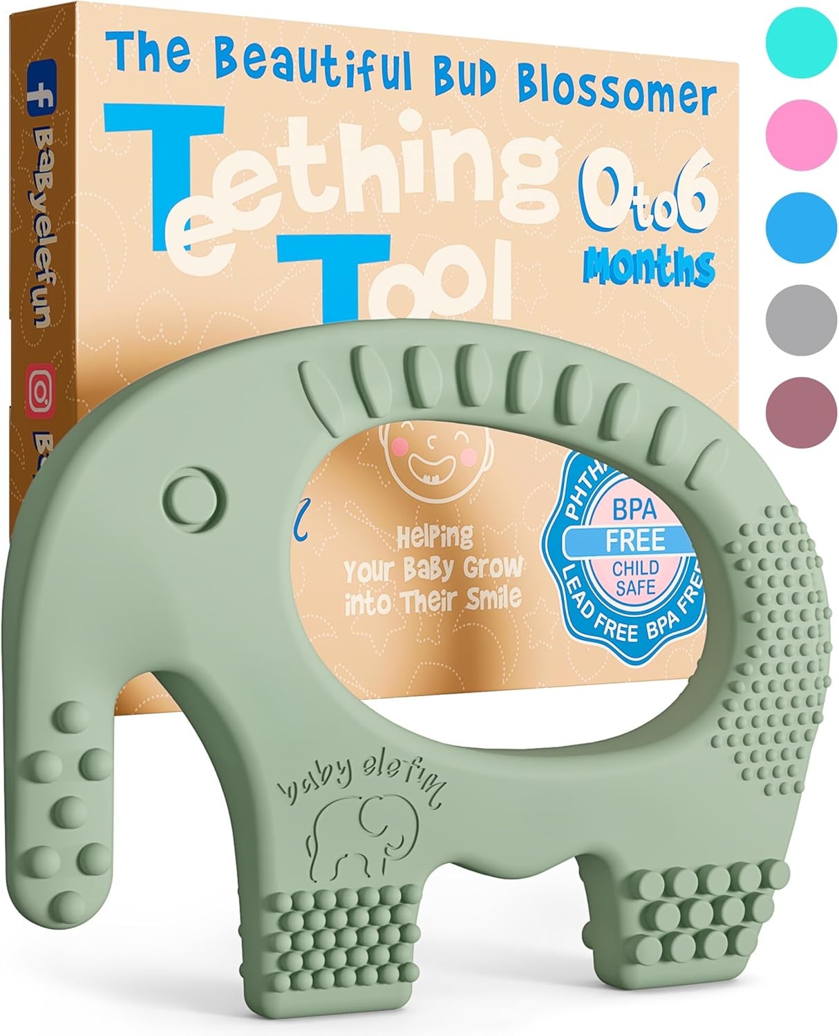 baby elefun Store BABY ELEFUN Teething Toy for Baby Cute Effective & Easy to Hold BPA Free Silicone Teethers with Gift Package Teether Best Babies 3 6 12 Months