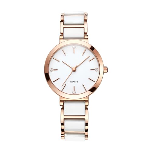 RORIOS Wristwatch for Women Simple Ceramic Bracelet Watches Analogue Quartz Wrist Watch Elegant Diamond Watches Ladies Women's Business Watch White