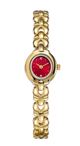JUSKAQZYI Vintage Women's Oval Bracelet Watches Elegant Quartz Waterproof Ladies Wristwatch Perfect for Daily Wear(Gold Red)