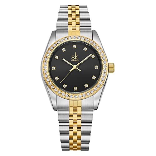 SHENGKE Women Watches Elegant Crystal Ladies Wrist Watches Girl Clock Luxury Watch for Women Relogio Feminino, 0136-Gold Silver