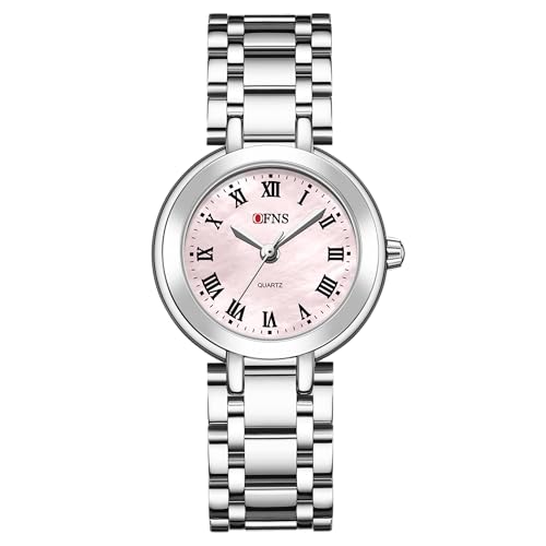 OFNS Womens Watches Elegant Quartz Ladies Wrist Watches Luxury Classic Watch for Women Girls Roman Numerals Stainless Steel Gifts for Ladies (Silver Pink)