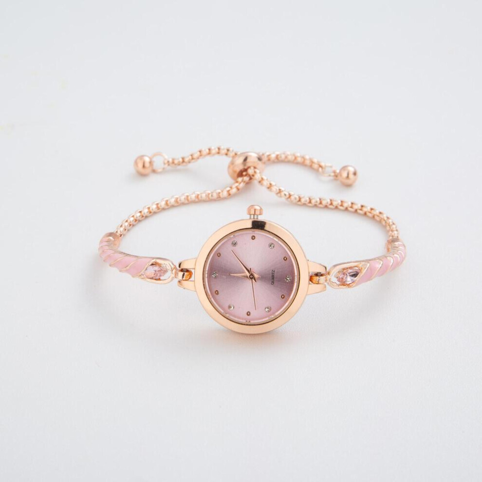 (Pink) Elegant Bracelet Watches For Women Ladies Adjustable Bracelets Watch Fashion Quartz Wristwatches Gift