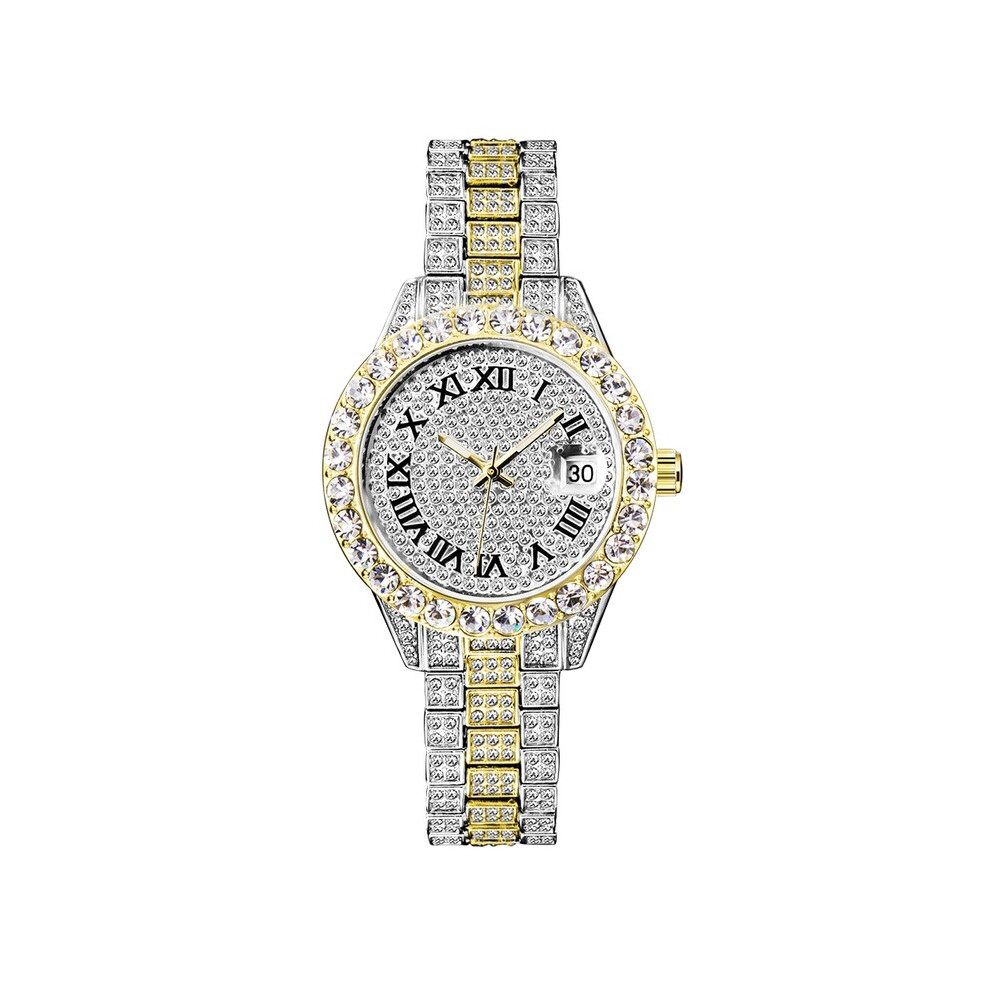 (3035-GoldSilver) MISSFOX Pink Women Watch Luxury Small Face Elegant Quartz Watches For Ladies Icy Look Party Jewelry Mini Babe So Cute Arm Clock Watc