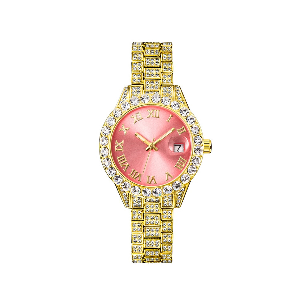 (3035-Gold) MISSFOX Pink Women Watch Luxury Small Face Elegant Quartz Watches For Ladies Icy Look Party Jewelry Mini Babe So Cute Arm Clock Watches