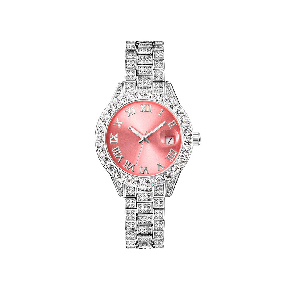 (3035Pink-Silver) MISSFOX Pink Women Watch Luxury Small Face Elegant Quartz Watches For Ladies Icy Look Party Jewelry Mini Babe So Cute Arm Clock Watc