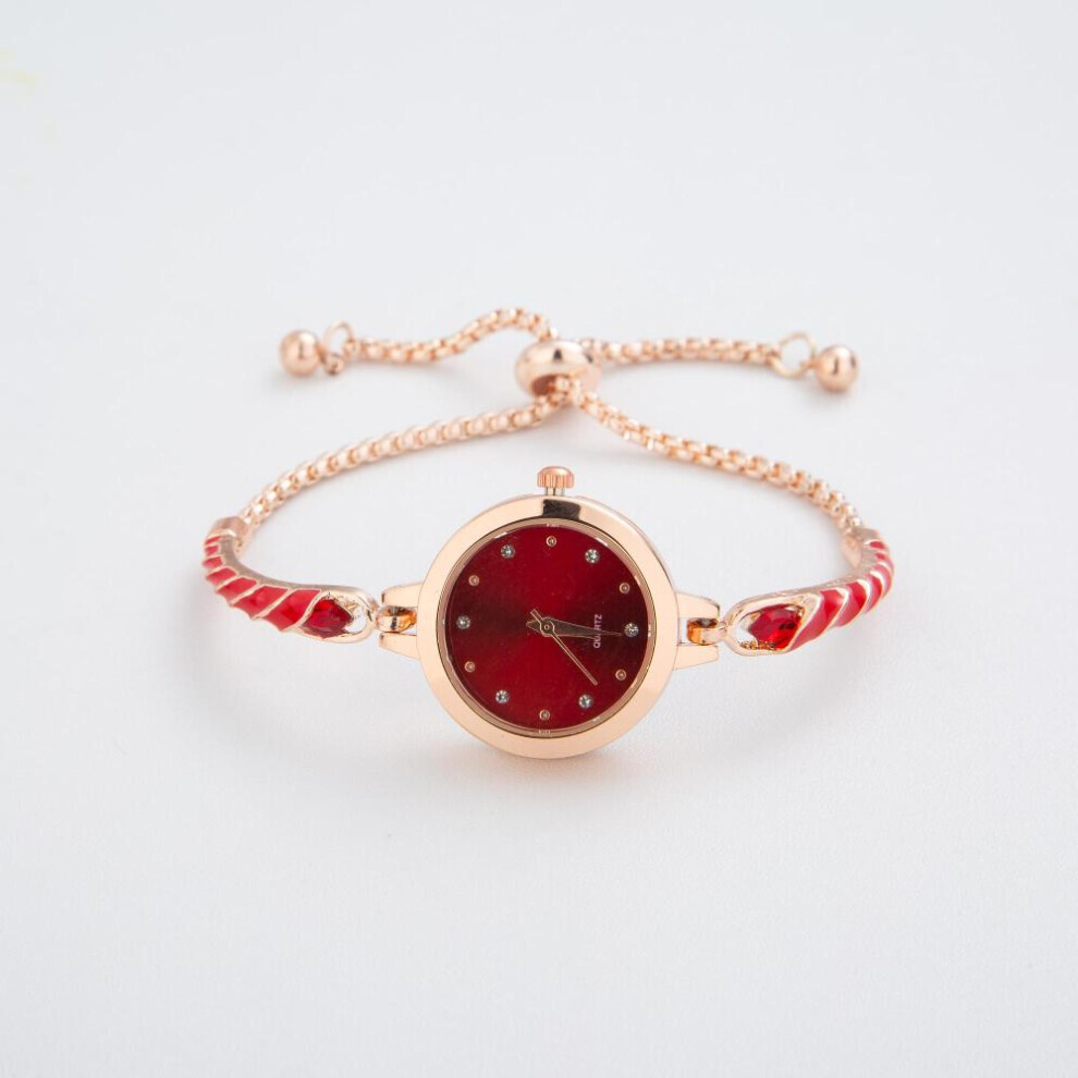 (Red) Elegant Bracelet Watches For Women Ladies Adjustable Bracelets Watch Fashion Quartz Wristwatches Gift