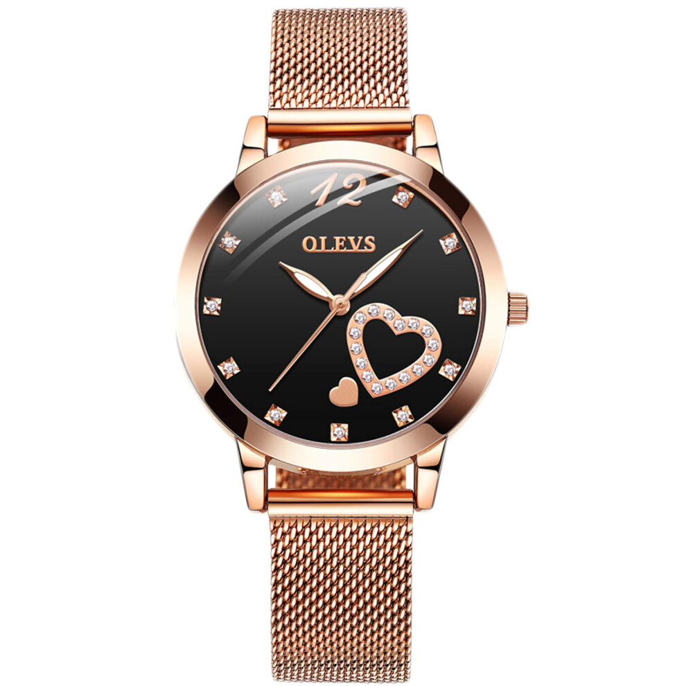 RORIOS Fashion Wrist Watches for Women Rose Gold Steel Strap Analogue Quartz Wristwatch Elegant Watches for Ladies Girls