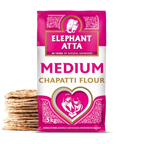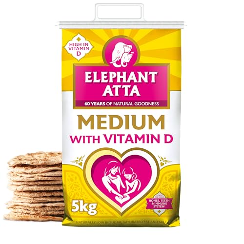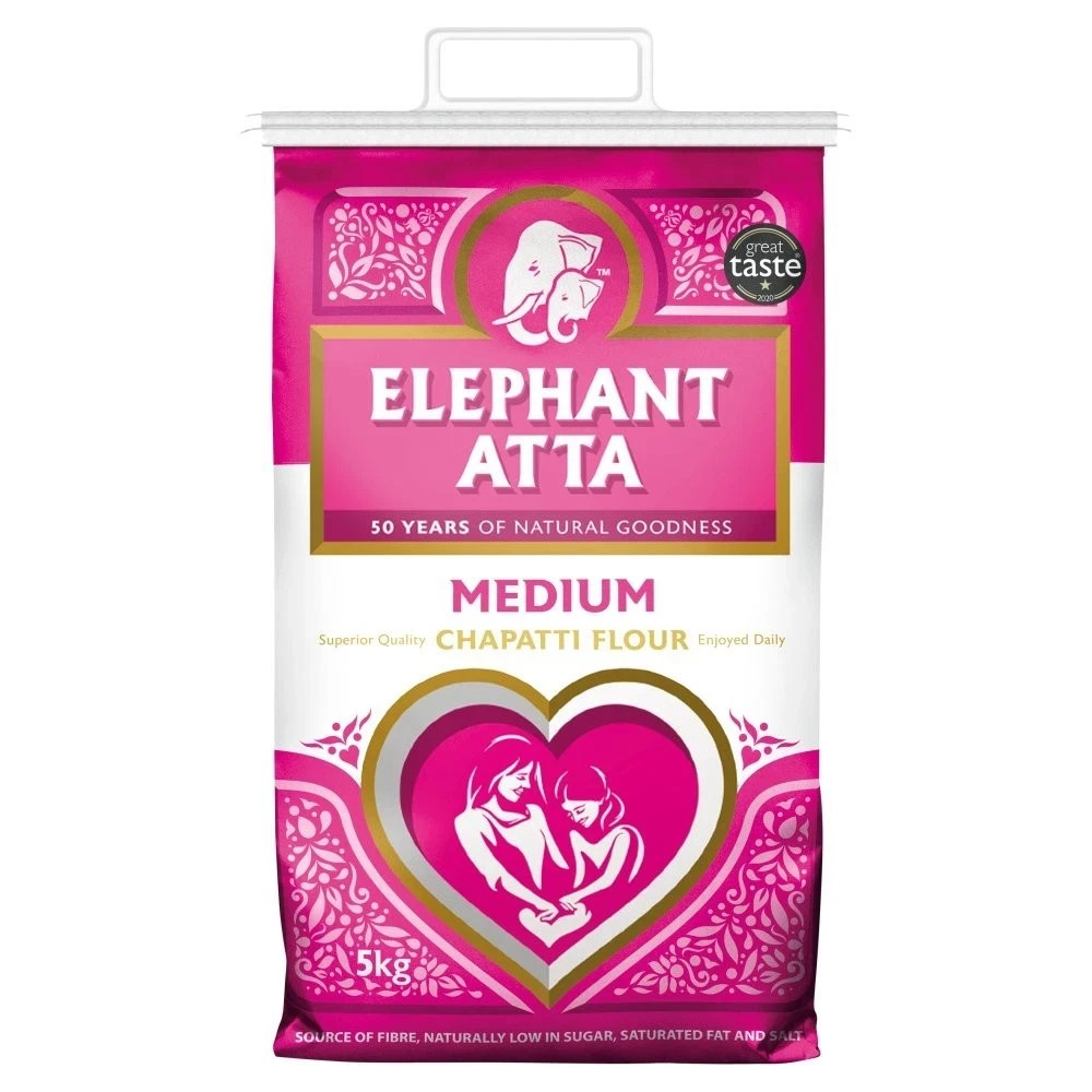 Elephant Atta Medium Atta Flour with Vitamin D | Atta | Vitamin D | Chapatti Flour | Forfeited Flour | Health Flour | Vit D | Naan Flour | Roti Flour | Plain Flour | (5kg)