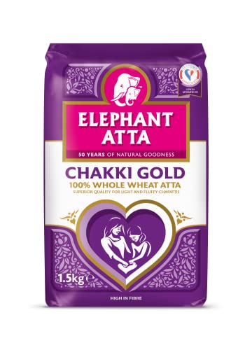 Elephant Atta Chakki Gold Chapatti Flour | Atta | Premium Flour | Naan Flour | Roti Flour | Chakki Atta | Chakki Flour | Chaki Flour | Plain Flour | (1.5kg)