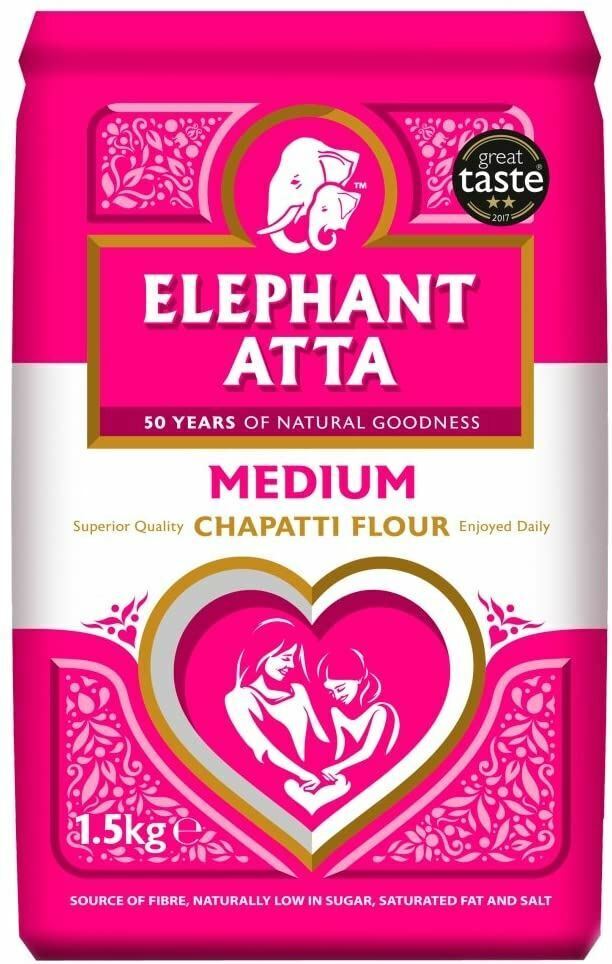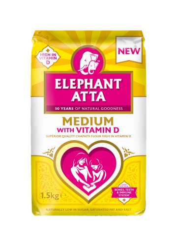 Elephant Atta Medium Flour with Vitamin D | Atta | Vitamin D | Chapatti Flour | Forfeited Flour | Health Flour | Vit D | Naan Flour | Roti Flour | Plain Flour | (1.5kg)