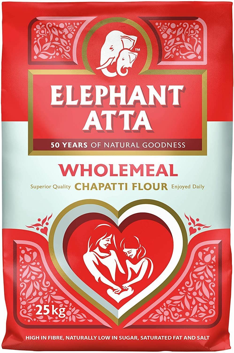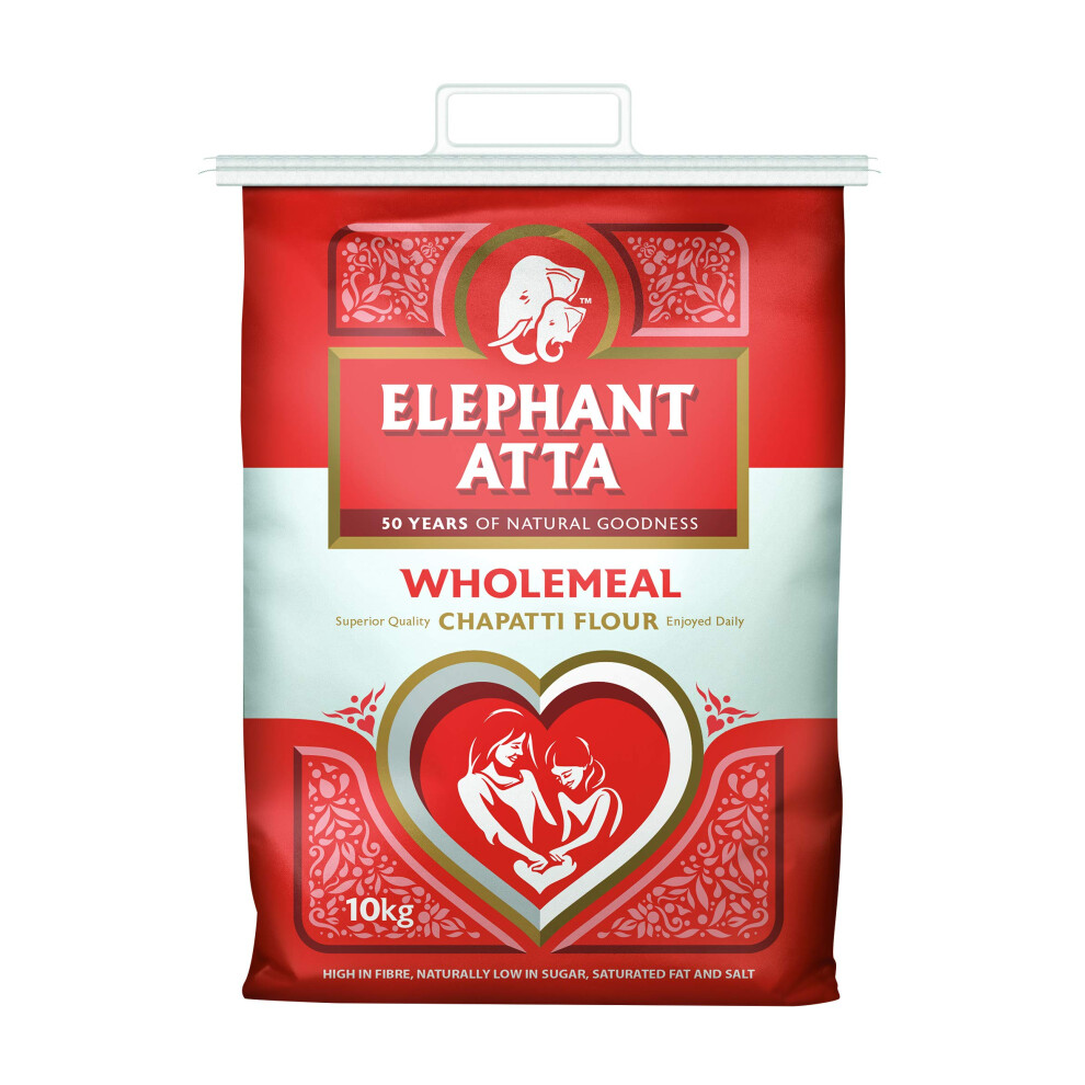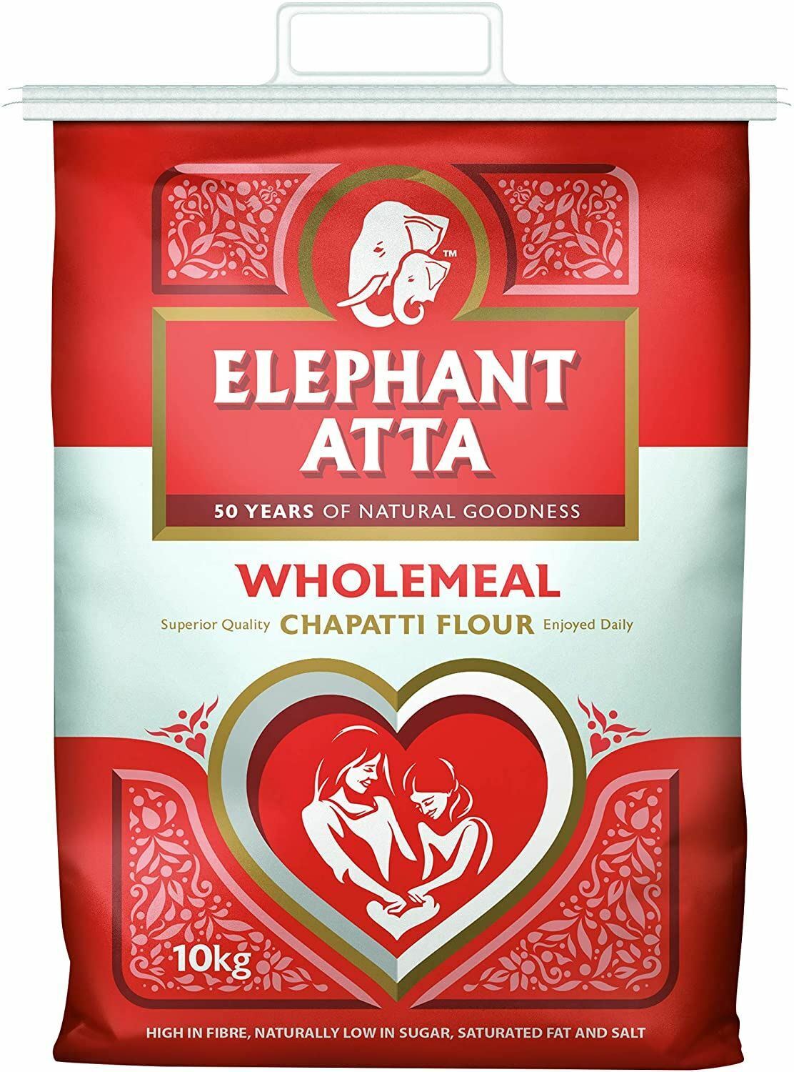 Elephant Atta Wholemeal Chapatti Atta Flour | Wholemeal Flour | Naan Flour | Roti Flour | Whole Meal | Bulk Flour | Catering Flour | Plain Flour | (10kg)