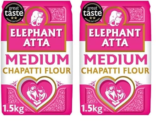 Elephant Atta Chakki Gold Chapatti Flour | Atta | Premium Flour | Naan Flour | Roti Flour | Chakki Atta | Chakki Flour | Chaki Flour | Plain Flour | (1.5kg) (Pack of 2)