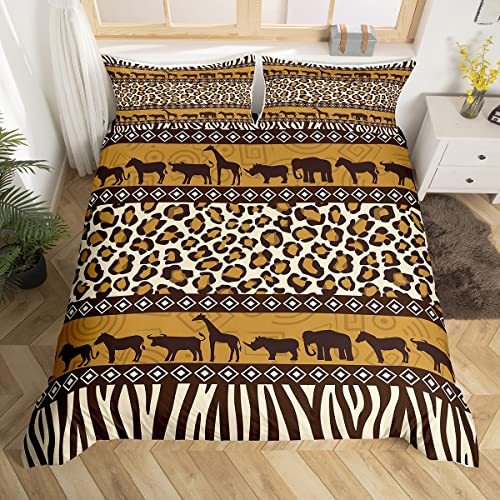 Leopard Cheetah Print Duvet Cover,African Safari Animal Bedding Sets Single,Zebra Skin Pattern Comforter Cover Cow Lion Tiger Bedding,Horse Elephant Giraffe Quilt Cover,Tribal Aztec Bedroom Decor