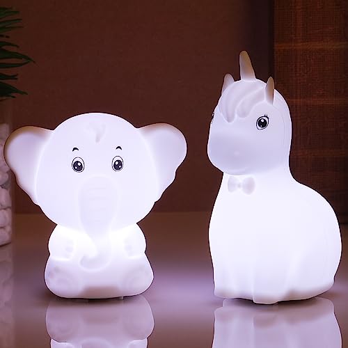 Tremdwoto Cute Unicorn Night Lights for Kids, Elephant Kawaii Lamp with Tap Control, 7 Colors Birthday Gifts for Baby Toddler Teen Children Boys, Portable Silicone Soft Nightlight Nursery Decor