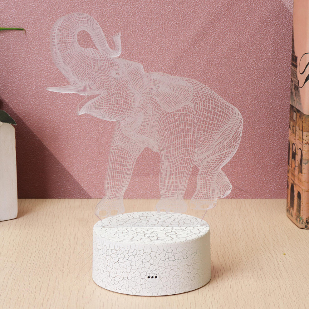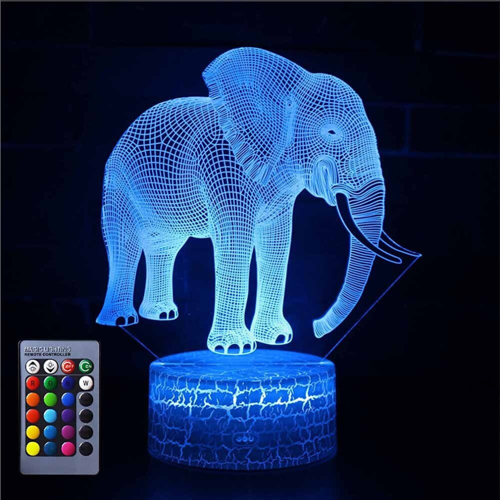 3D Illusion Night Light Desk Elephant Lamp with Remote Control & Touch Switch 16 Colors Home Decor Gift for Kids
