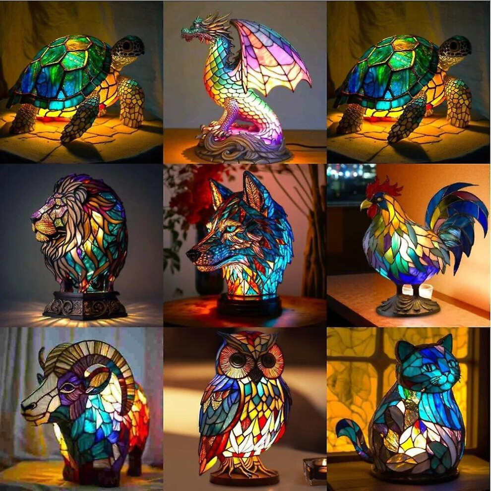 (elephant) Animal Table Lamp Stained Glass Stained Night Light Retro Desk Lamps Xmas Gift 2024