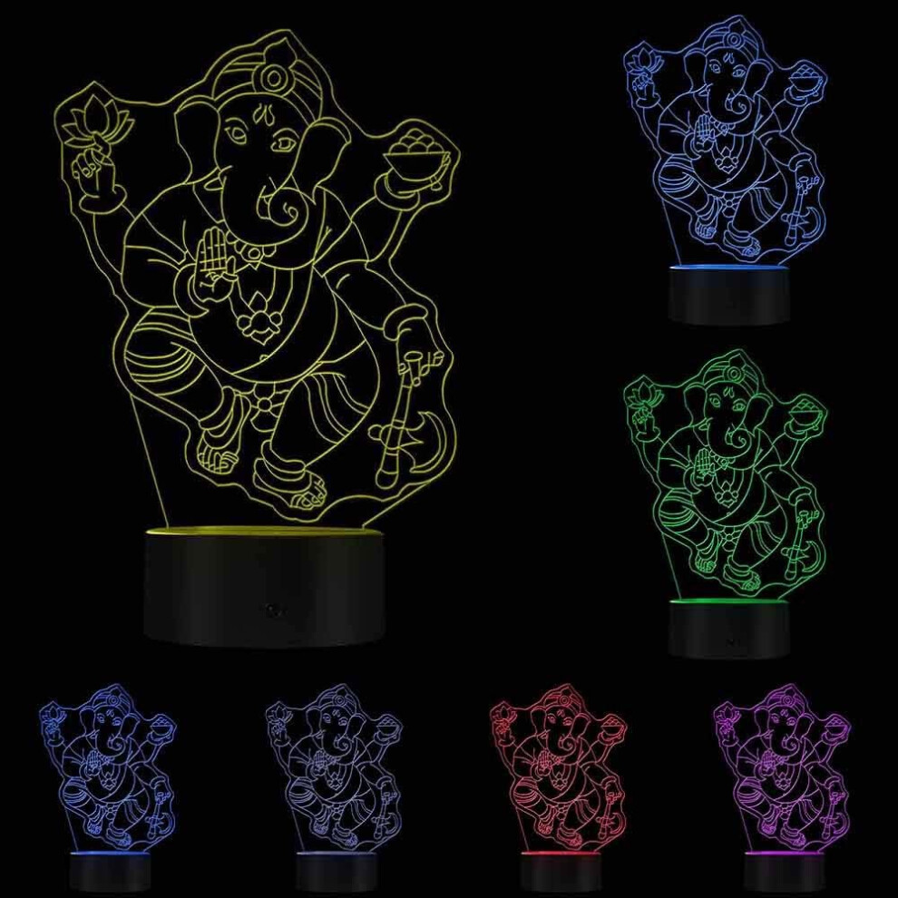 3D Ganesha Elephant Hindu Light Art Desk Lamp Ganesha Hindu God LED Night Light Spiritual Ganapati Religious Elephant Decorative Light Lamp