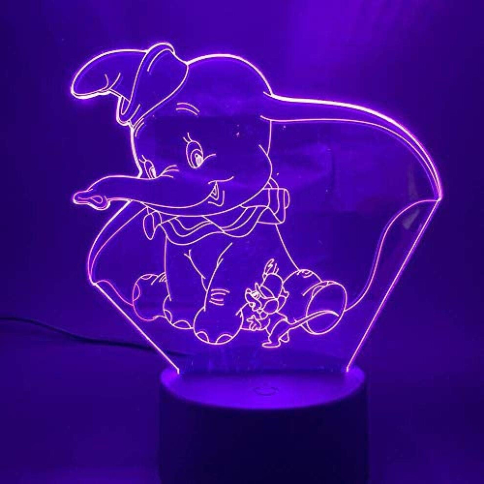 3D Night Light 3D Led Night Light Lamp Dumbo Cute Baby Nightlight Color Changing Indoor Decoration Kids Girl Boys Child Gift 3D Lamp Elephant