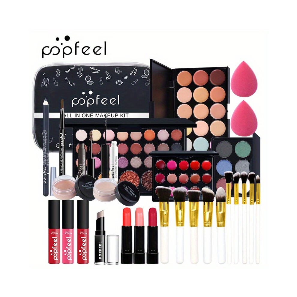 All In One Makeup Set Eyeshadow Concealer Lip Gloss Eyebrow Pencil Eyeliner Pen Makeup Brushes And Sponge Puff Cosmetics Kits