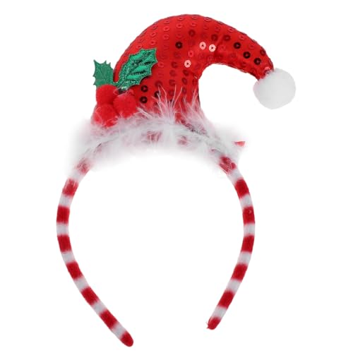 IMIKEYA Christmas Elf Headband with Glitter Red Pom Pom Hat Festive Holiday Party Hair Hoop for Adults Christmas Costume Accessory for Photo Booths and Seasonal Celebrations
