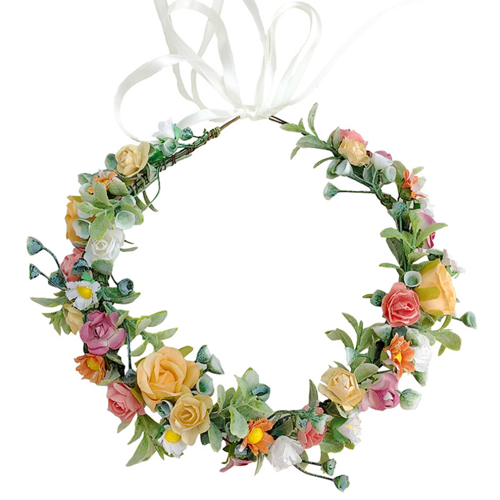 Charming Elf Floral Headpiece, Spring Wreath BOHO Garland with Adjustable Ribbon for Bohemia Floral Halo, Woodland Headband Ideal for Wedding Festival