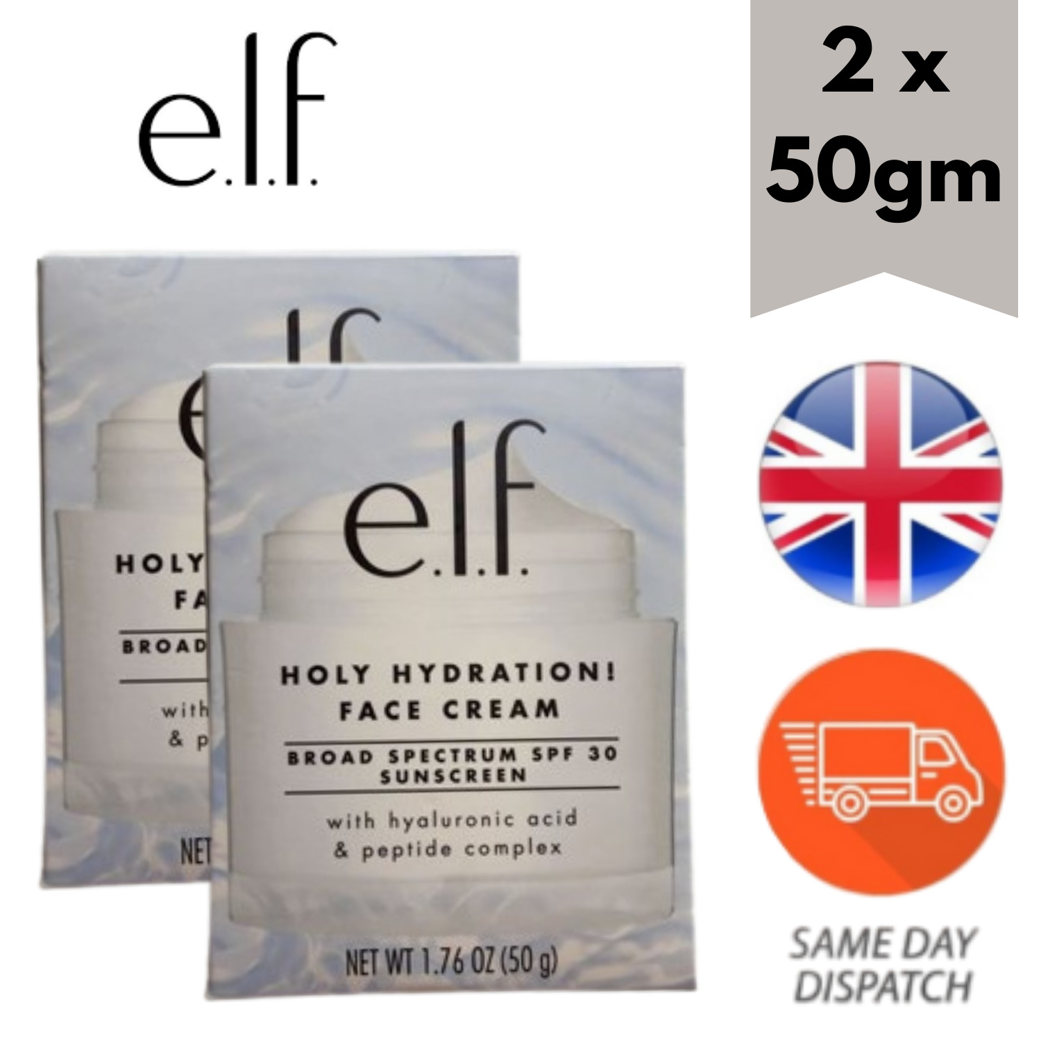 2 X 50gm e.l.f. Cosmetics Holy Hydration Face Cream for Nourishing Hydrated Skin