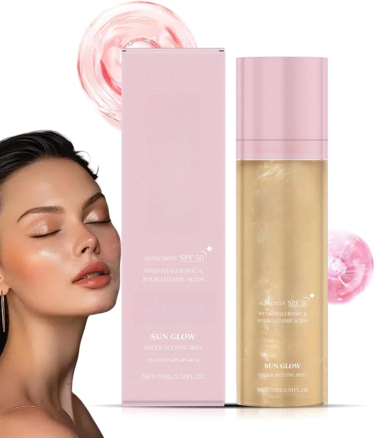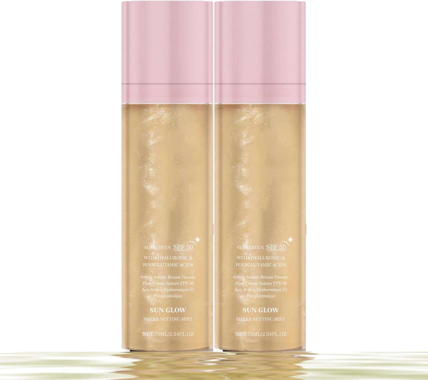 Sunglaze Sheer Setting Mist Sunscreen SPF 50, Hydrating Makeup-Friendly Glow Sp