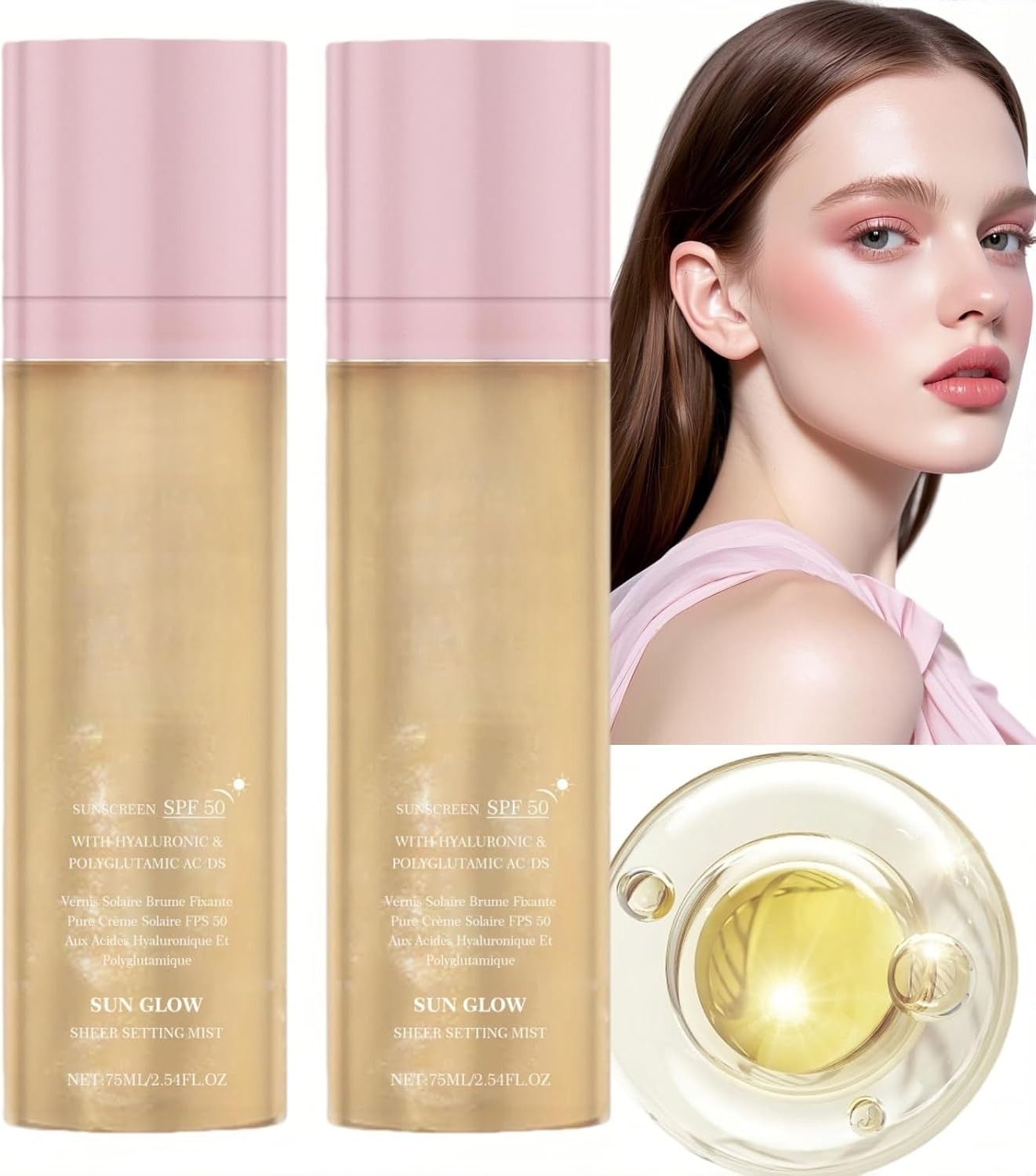 2pcs Sheer Setting Mist Sunscreen SPF 50,Hydrating Makeup-Friendly Glow Spray,F