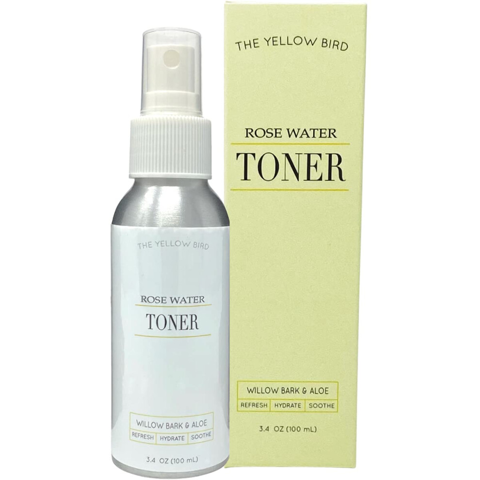 Yellow Bird Natural Rose Water Face Toner - Soothing Facial Hydration Spray Calming Makeup Setting Mist Moisturizer Willow Bark to Reduce Redness E