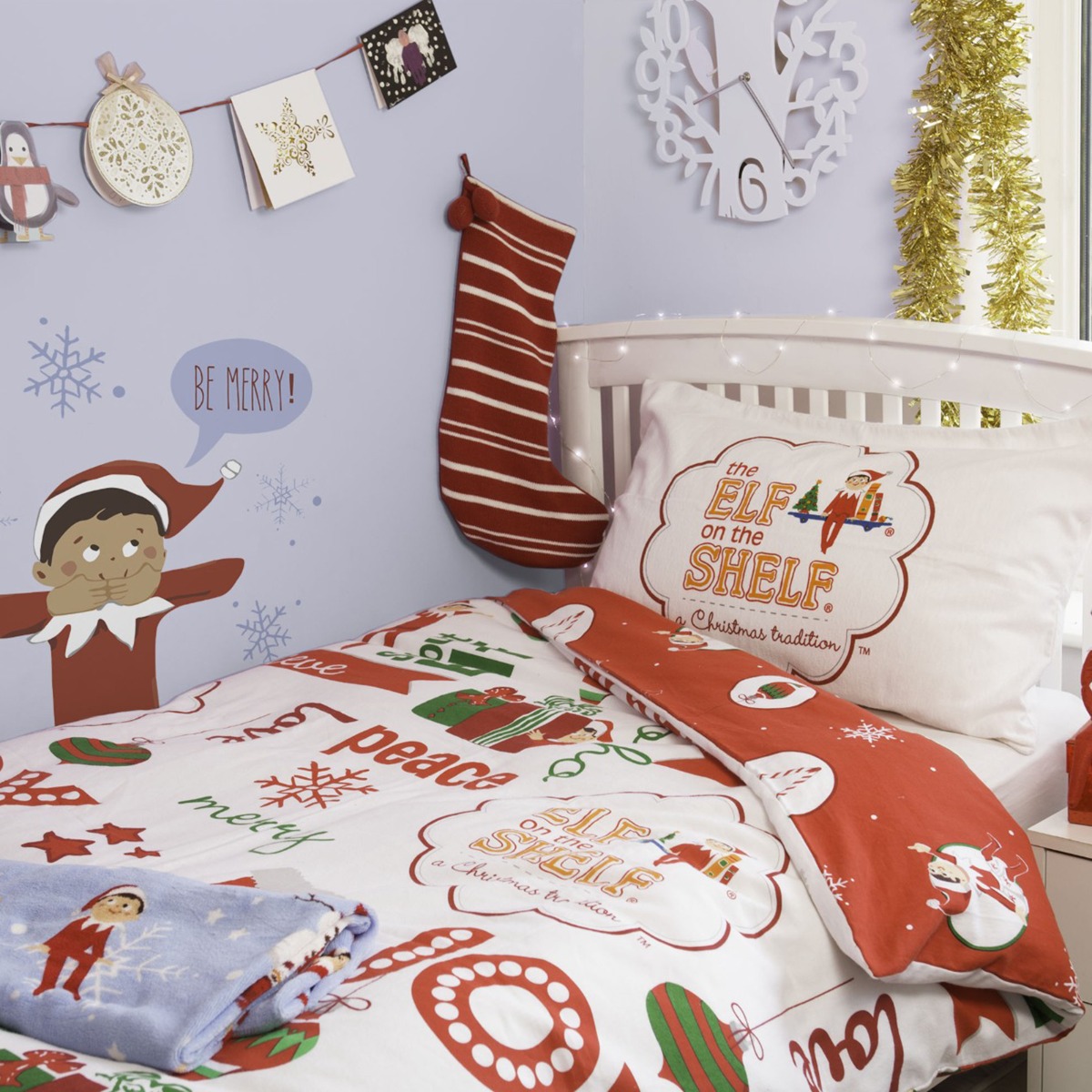The Elf On The Shelf Single Bed Sheet Set, Single Bed Set, Top Sheet, Fitted Sheet, Pillowcase, 100% Cotton, Christmas, Official Product