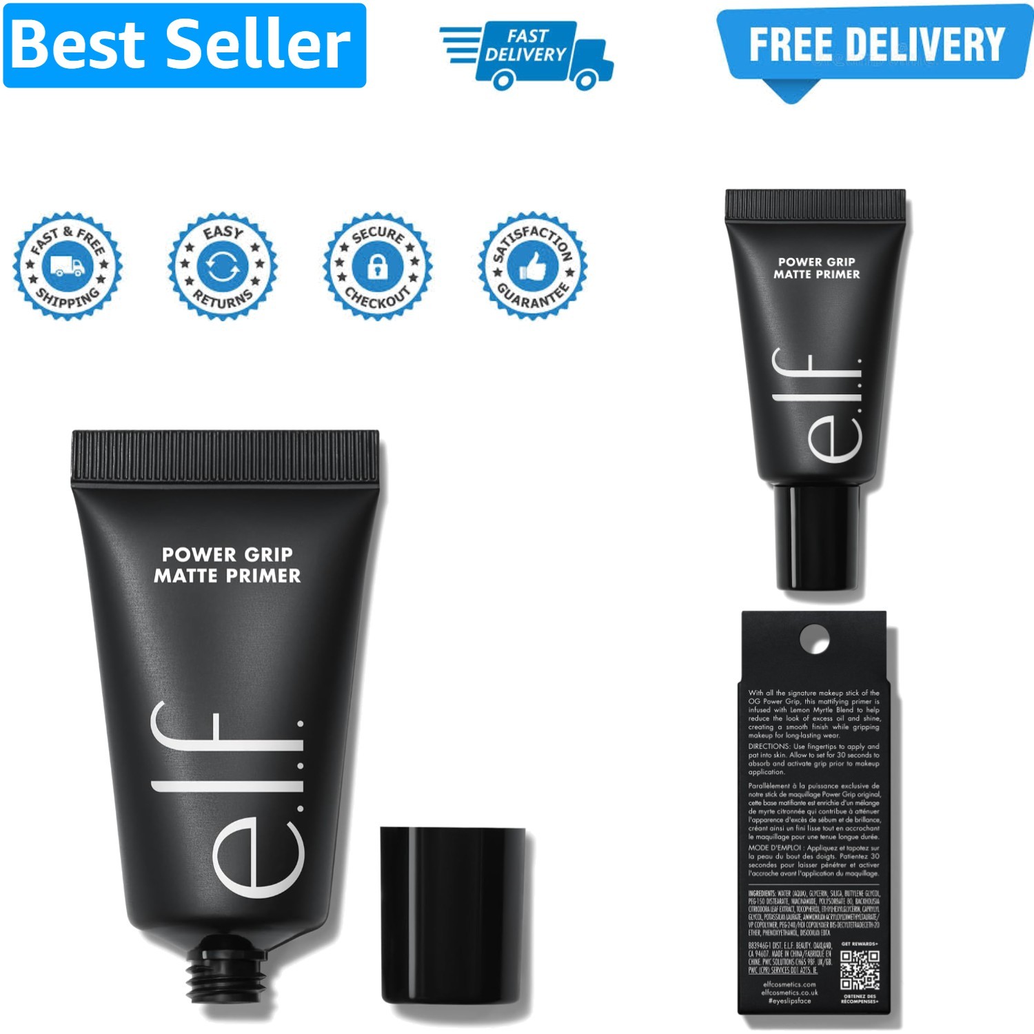 E.L.F. Power Grip Primer Clear - 0.5 fl oz, 15ml & Hyaluronic Acid ELF