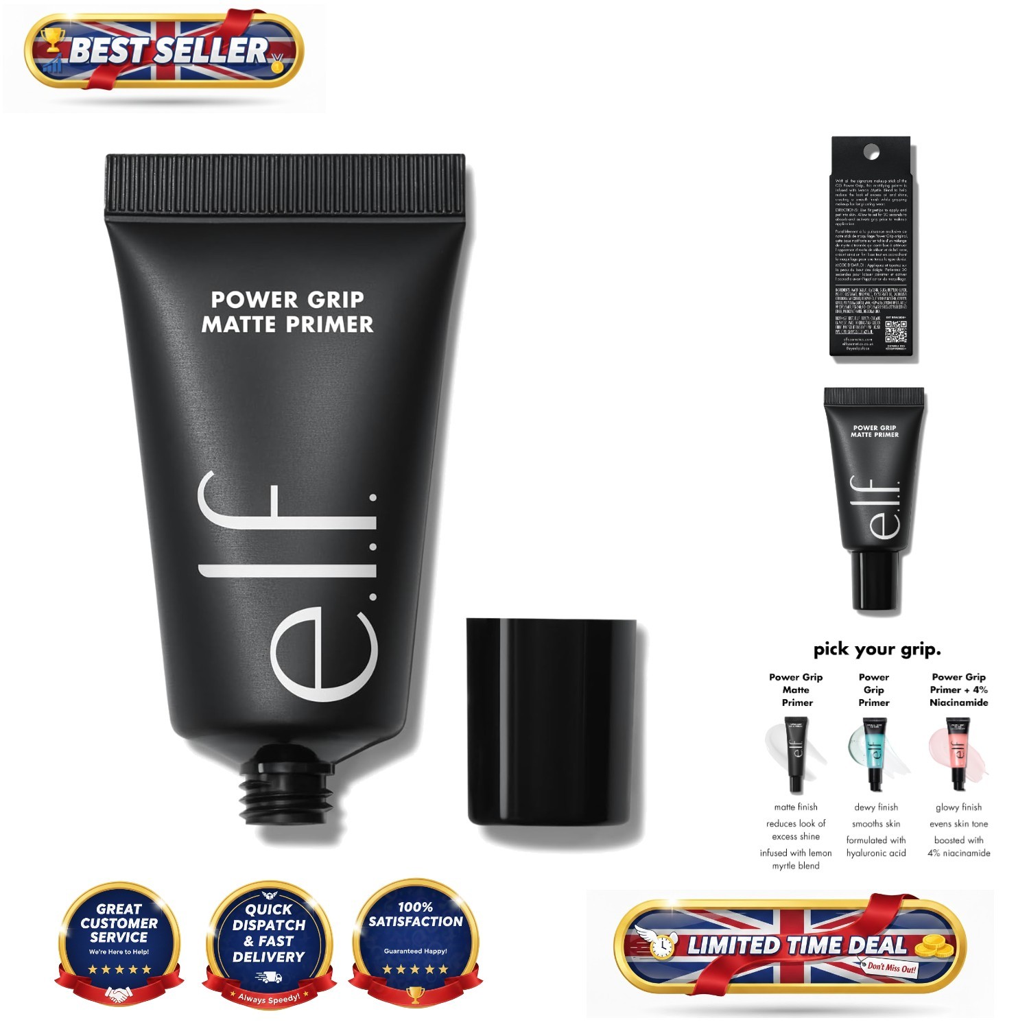 e.l.f. Power Grip Matte Primer, Matte Finish, Long-Lasting, Suitable for All Skin Types, Infused with Lemon Myrtle Blend, Vegan & Cruelty-Free